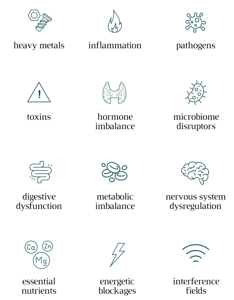 In addition to standard lab testing and in-clinic physical exam, we offer assessments using the following Biological Medicine screening tools: